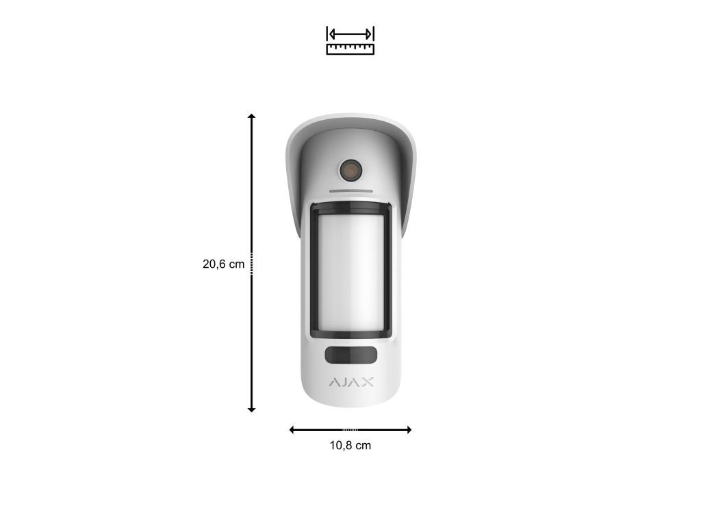 Ajax MotionCam Outdoor je venkovní bezdrátový detektor pohybu s fotoverifikací poplachu. V případě narušení střežené zóny se aktivuje fotoaparát a pořídí sekvenci až 5 snímků. Z předinstalovaných baterií je přístroj schopen provozu až po dobu 3 let, detekuje pohyb až na vzdálenost 15 metrů, ignoruje pohyb zvířat a má ochranu proti maskování.