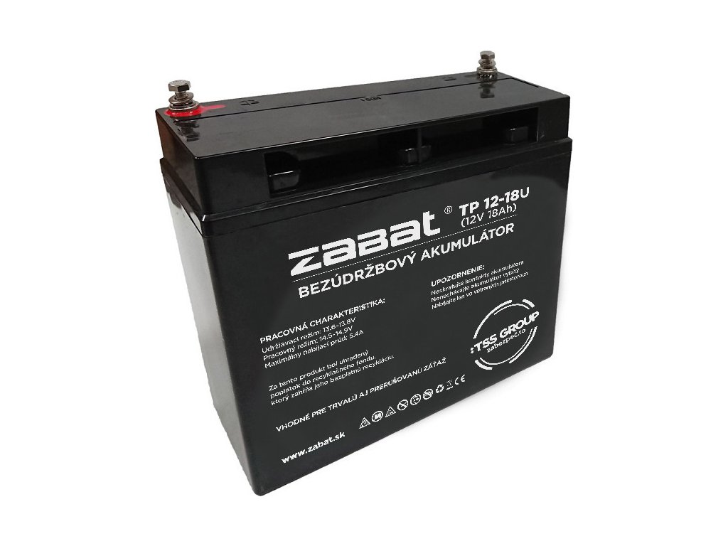Akumulátor 12 V / 18 Ah, rozměry 180 x 75 x 166 mm, hmotnost 5,2 kg/ks, vhodné pro použití v CCTV, EZS a jako záloha pro UPS systémy.