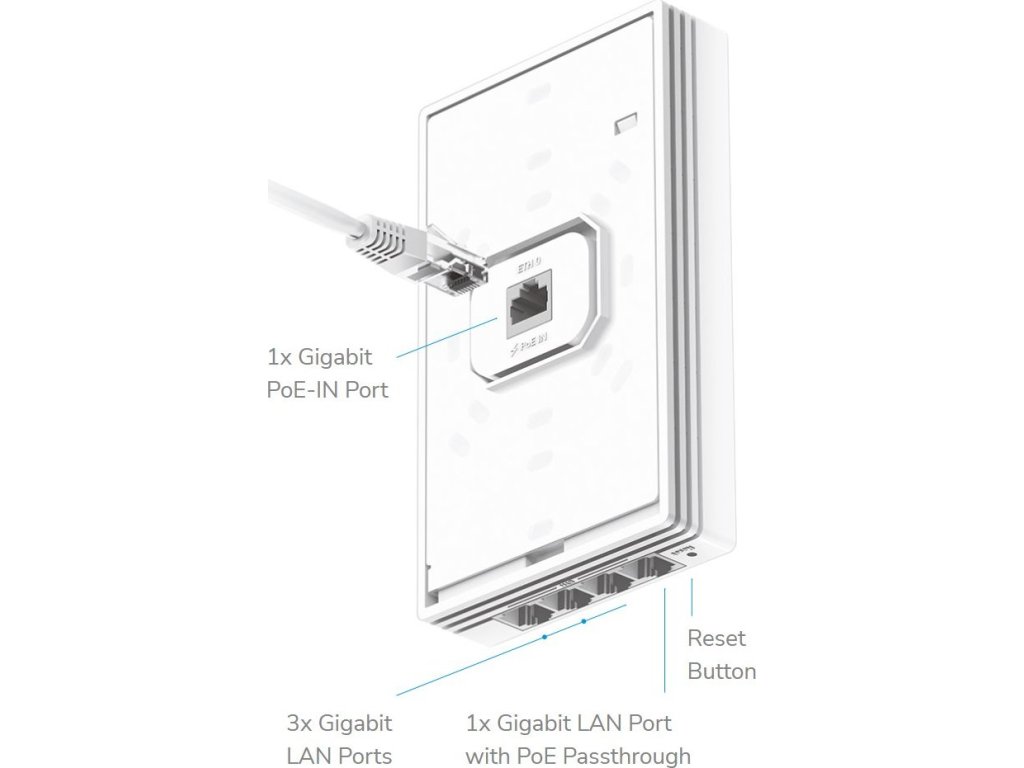Tento Access Point disponuje 5x Gigabitovým LAN portem (1x PoE-IN, 1x PoE-Out), Dual-Band Wi-Fi 5 dosahuje rychlosti 300 Mbps v 2.4 GHz pásmu, 866 Mbps v 5 GHz a podporuje technologie jako MU-MIMO, *Band Steering a Beamforming.
