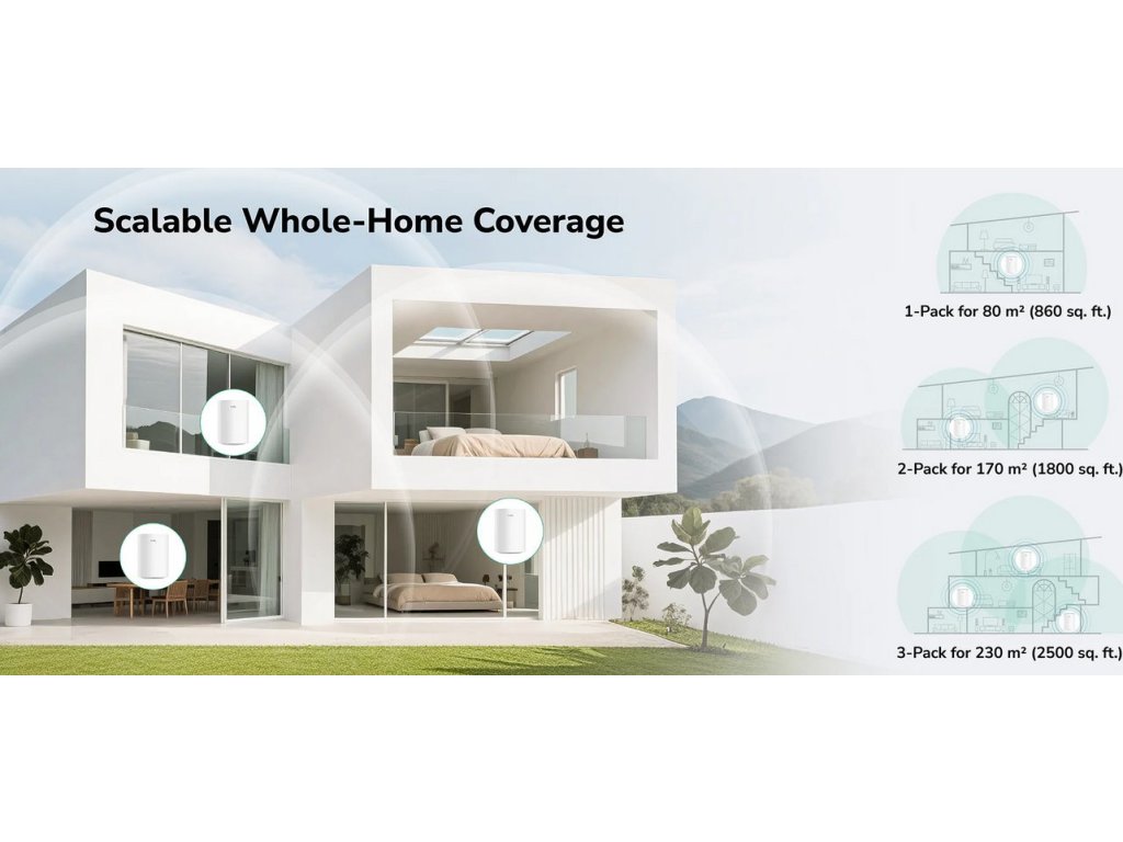 Mesh systém není nic jiného než sada routerů pro použití v domácnostech, bytech, kancelářích, kde je pokrytí Wi-Fi sítí z jednoho routeru příliš slabé. Více Mesh jednotek si mezi sebou automaticky předává klienty a komunikuje mezi sebou pouze bezdrátově. Balení obsahuje dvě zařízení, které jsou již nakonfigurováno a nevyžadují zásah uživatele kromě nastavení názvu Wi-Fi. Ideální řešení pro pokročilé i laiky v oblasti správy sítí a budování velké bezdrátové sítě.