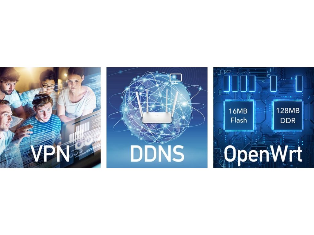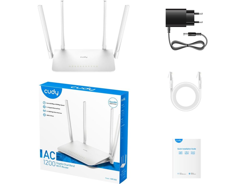 Cudy, výrobce síťových zařízení, přináší Wi-Fi 5 Dual-Band Router s několika význačnými prvky. Tento směrovač disponuje čtyřmi LAN porty s rychlostí 10/100/1000 Mbps, jedním Gigabitovým WAN portem a čtyřmi fixními anténami se ziskem 5 dBi pro poskytnutí silného signálu i v obtížně dosažitelných místech domova. Skvělý hardware umožňuje nainstalování pokročilého systému OpenWrt, díky čemuž bude mít uživatel přístup k širokému spektru různých nastavení včetně VPN, bezdrátové části, operačních módů, firewallu a dalších 3500 softwarových balíčků.