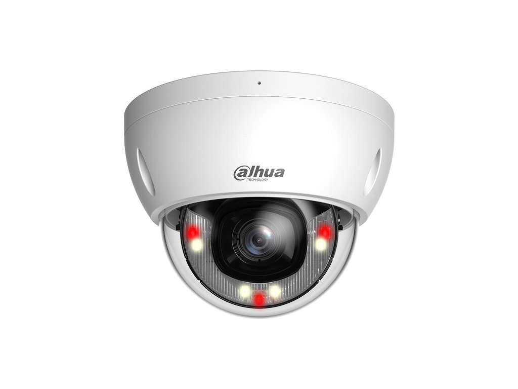 2 Mpx dome IP kamera, exteriérová, Day/Night, Smart IR LED a VS LED přísvit s dosvitem 30 m, 1/2,8" 2 Megapixel CMOS, rozlišení 1920 x 1080 px @ 1-25/30 fps, citlivost 0,002 lx @ F1.6, objektiv 3,6 mm, úhel záběru H: 87°, V: 56°, D: 126°; AWB, BLC, HLC, WDR 120dB, 3DNR, komprese H.265 / H.264 / H.264H / H.264B / MJPEG (Sub Stream), podpora Smart codec, ONVIF kompatibilní, RTMP; inteligentní funkce: IVS (perimetr protection), Smart search, SMD; napájení 12 V DC / PoE (802.3af), spotřeba max. 12 V 7,5 W, pracovní teplota od -40 °C do +60 °C, IP 67, IK 10, rozměry 81,0 x ø109,9 mm, hmotnost 0,35 kg