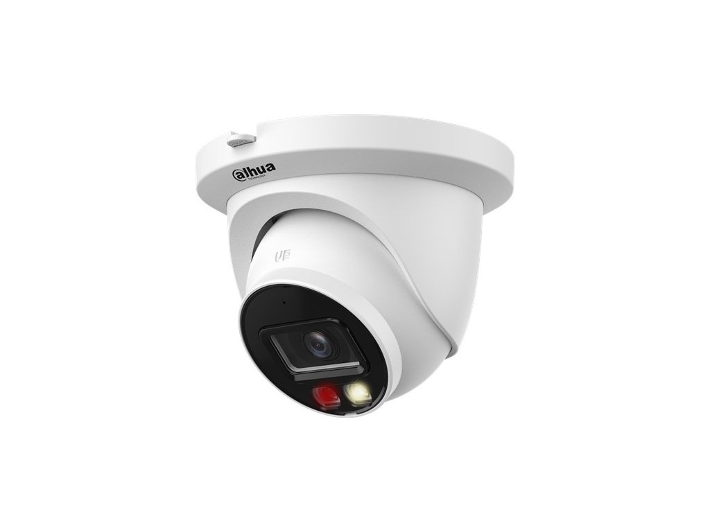 6 Mpx Turret IP kamera, venkovní, Day/Night, Smart IR LED a WL LED přísvit s dosahem 30 m, 1 /2,7" 5 Megapixel CMOS, rozlišení 3288 x 1850 px @ 1-20 fps, 2668 x 1520 px @ 1-25/30 fps, citlivost 0,007 lx @ F1.6; objektiv 2,8 mm, úhel záběru H: 112°, V: 61°, D: 132°; AWB, BLC, HLC, WDR, 3DNR, komprese H.265 / H.264 / H.264H / H.264B / MJPEG (Sub Stream), podpora smart codec, RTMP; ONVIF kompatibilní; inteligentní funkce: IVS (perimeter protection), Smart Search, SMD plus, RJ-45, napájení 12 V DC/ PoE (802.3af), spotřeba max.: 5,7 W, pracovní teplota od -40 °C do +60 °C, IP 67, rozměry 99,1 mm x ø121,9 mm, hmotnost 0,53 kg.