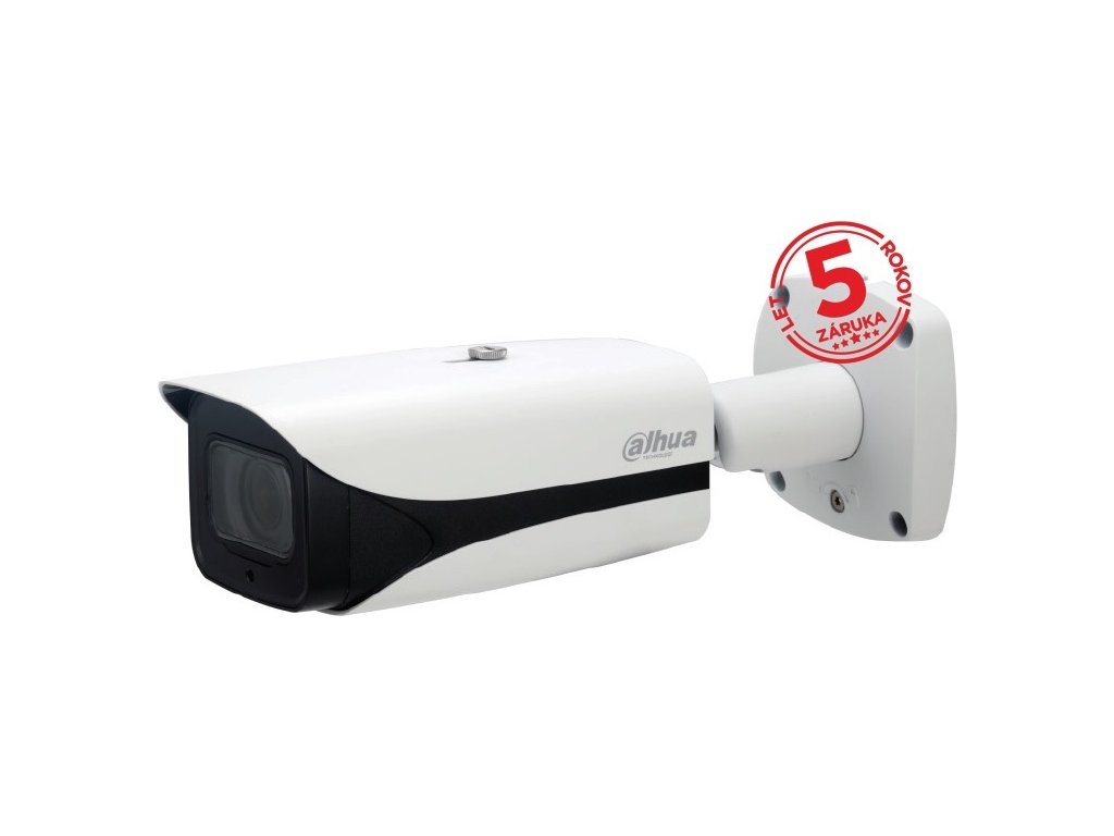 4 Mpx kompaktní IP kamera, exteriérová, IR LED s dosvitem 60 m, 1/1.8" 4 Megapixel CMOS, rozlišení 2688 x 1520 px @ 1- 25/30 fps, citlivost 0,0007 lx @ F 1.8 (Color, 30 IRE), objektiv 2,7 - 12 mm, úhel záběru H: 115-47°, V: 62°-27°, D: 137°-54°; AWB, BLC, HLC, SSA, Defog, WDR 140 dB, 3DNR; komprese H.265 / H.264 / H.264H / H.264B / MJPEG (Sub Stream), podpora AI a Smart codeků, RTMP; Inteligentní funkce: IVS (Perimetr Protection), Smart Object Detection, SMD 3.0, AcuPick, AI SSA, Face Detection, People Counting, Smart Search, Video Metadata, Heatmap, Smart Sound Detection; ONVIF kompatibilní, slot pro MicroSD kartu až 512 GB, Audio RCA I/O 1/1, Alarm I/O 2/1, RJ-45, napájení 12 V DC / PoE(802.3af), ePoE, spotřeba max. 9,8 W, pracovní teplota od -40 do +60 °C, IP 67, IK 10; rozměry 273,2 x 95 x 95 mm, hmotnost 1,12 kg