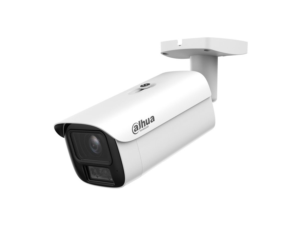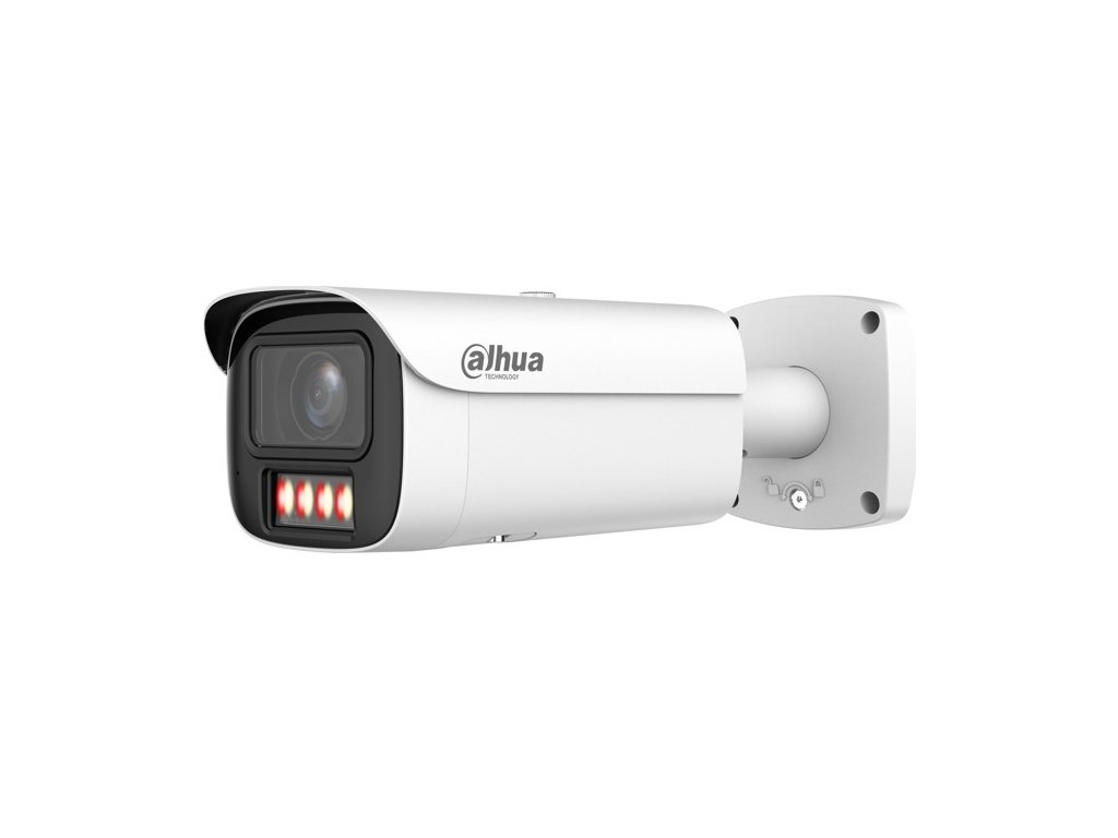4 Mpx kompaktní IP kamera, exteriérová, Day/Night, IR 60 m, WL 60 m, 1/1.8" 4 Megapixel CMOS, rozlišení 2688 x 1520 px @ 1–25/30 fps, citlivost 0,0007 lx @F1.8, objektiv 2,7–12 mm, úhel záběru H: 115°–47°, V: 62°–27°, D: 137°–54°; AWB, AI-ISP, BLC, HLC, WDR 140 dB, AGC, ROI, 3DNR, SSA, Defog, LDC, Full Color, EIS; komprese H.265 / H.264 / H.264H / H.264B / MJPEG (Sub Stream), RTMP, podpora Smart a AI Codeků, ONVIF kompatibilní; inteligentní funkce: IVS (Perimeter Protection), Large AI model (Xinghan), SMD 4.0, AcuPick, Face Detection, People Counting, Queue Management, Heat Map, Video Metadata, Smart Search; RJ-45, zabudovaný mikrofon, micro SD karta max. 1 TB, alarm I/O 2/1, audio I/O 1/1, napájení 12 V DC / PoE+ (802.3at) / ePoE, Dual Power Backup, spotřeba max. 22,1 W, pracovní teplota od -40 °C do +60 °C, IP67, IK10, rozměry 279,8 x 96,7 x 94,9 mm, hmotnost 1,09 kg.