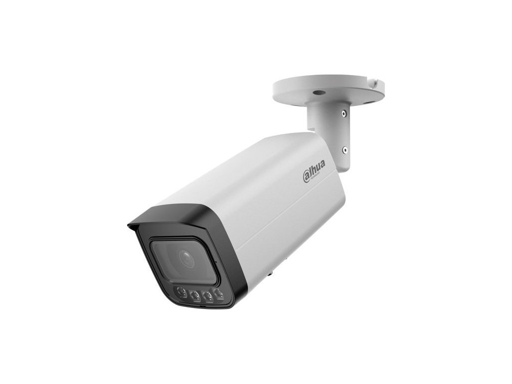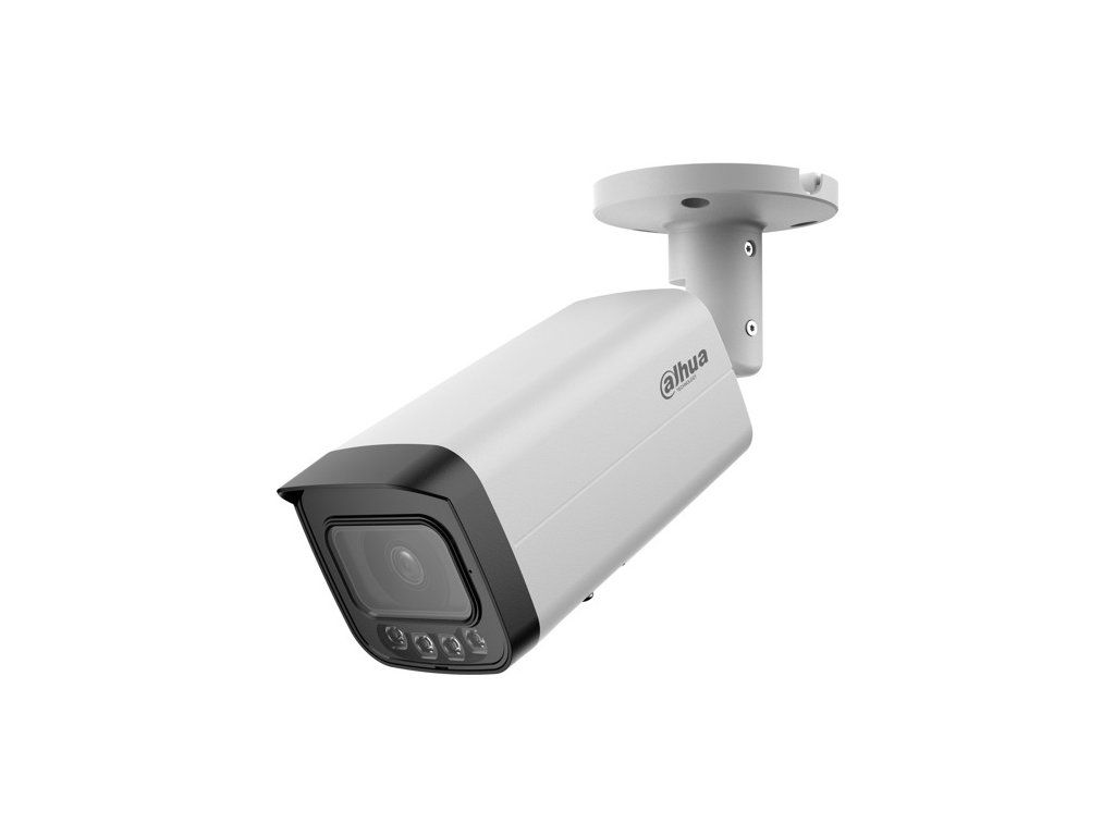 4 Mpx kompaktní IP kamera, venkovní, Day/Night, IR 80 m, WL 60 m, 1/1.8" 4 Megapixel CMOS, rozlišení 2688 x 1520 px @ 1–25/30 fps, citlivost 0,0007 lx @F1.6, objektiv 2,8 mm, úhel záběru H: 112°, V: 58°, D: 137°; AWB, AI-ISP, BLC, HLC, WDR 140 dB, AGC, ROI, 3DNR, SSA, Defog, LDC, Full Color; komprese H.265 / H.264 / H.264H / H.264B / MJPEG (Sub Stream), RTMP, podpora Smart a AI Codeků, ONVIF kompatibilní; inteligentní funkce: IVS (Perimeter Protection), Large AI model (Xinghan), SMD 4.0, AcuPick, Face Detection, People Counting, Queue Management, Heat Map, Video Metadata, Smart Search; RJ-45, zabudovaný mikrofon, micro SD karta max. 1 TB, alarm I/O 1/1, audio I/O 1/1, napájení 12 V DC / PoE+ (802.3at) / ePoE, Dual Power Backup, spotřeba max. 15,6 W, pracovní teplota od -40 °C do +60 °C, IP67, IK10, rozměry 238 × 90,7 × 90,7 mm, hmotnost 0,835 kg.