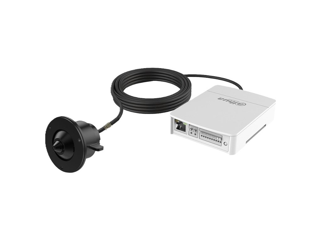 4 Mpx Pinhole IP kamera, Day/Night, 1/2.7" 4 Megapixel progressive CMOS, rozlišení 2688 × 1520 px @ 1-50/60 fps, citlivost 0,005 lx @ F2.0, pevný objektiv 2,8 mm, úhel záběru H: 100°, V: 57°, D: 114°; AWB, WDR 120 dB, BLC, SSA, HLC, AGC, ROI, 3D DNR, LDC; komprese: H.264 / H.264H / H.264B / H.265 / MJPEG (pouze substream), RTMP, podpora AI kodeků; ONVIF kompatibilní; inteligentní funkce: IVS (Perimeter Protection), Smart Object detection, AcuPick, Face Detection, People Counting, Privacy Protection, Smart Search; audio I/O 3,5 mm jack 1/1, Alarm I/O 2/2, slot pro micro SD kartu max.: 512 GB, RJ-45 (10/100 Base-T), pracovní teplota od -40 °C do +60 °C, napájení PoE (802.3af) / 12 V DC, max. spotřeba 6,7 W, rozměry kamery ø30,5 × 45,8 mm, rozměry jednotky: 110 × 83 × 24 mm, hmotnost celkem 0,511 kg.