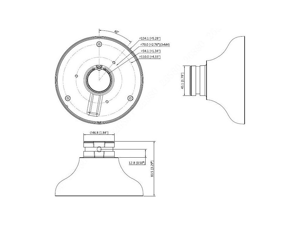 Hliníkový držák pro kamery Dahua, hmotnost 0,29 kg, max. zatížení 1 kg, barva bílá, pracovní teplota od -40 °C do +60 °C, rozměry ø 134,1 x 83,5 mm