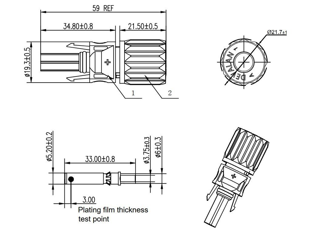 Devalan set bateriových konektorů umožňuje spolehlivé připojení Solax baterií k vysokonapěťovým měničům DEYE do 25 kW se speciálními modrými konektory. Odolnost proti vysokému napětí (1100 VAC, 6400 VAC impulsní) a proudová kapacita 40 A zajišťují bezpečný a stabilní provoz. Ideální řešení pro integraci baterií na straně střídače, není kompatibilní s MC4 konektory, s nízkým kontaktním odporem a vysokou izolací.