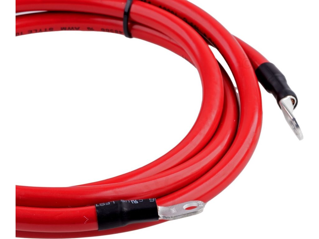 Sada dvou silových propojovacích kabelů slouží k paralelnímu propojení kladného i záporného pólu DEYE SE-G5.1 baterií. Sada obsahuje i datový kabel s RJ45 konektory na obou koncích. Veškeré kabely mají délku 2 m, silové mají průřez 4AWG (21 mm2), barvu dle použití a jsou zakončeny na obou koncích oky s průměrem 6 a 10 mm.
