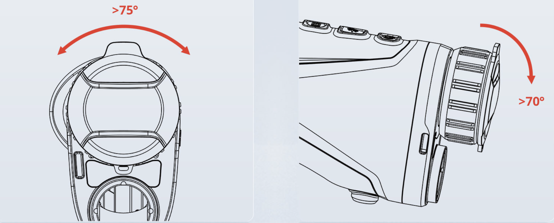 Integrovaný algoritmus automaticky detekuje přesnou polohu zařízení HIKMICRO CONDOR a aktivuje funkci automatického vypnutí obrazovky, pokud ji není třeba používat. HIKMICRO CONDOR se automaticky přepne do pohotovostního režimu při bočním náklonu 75° i při náklonu 70° dolů nebo nahoru.
