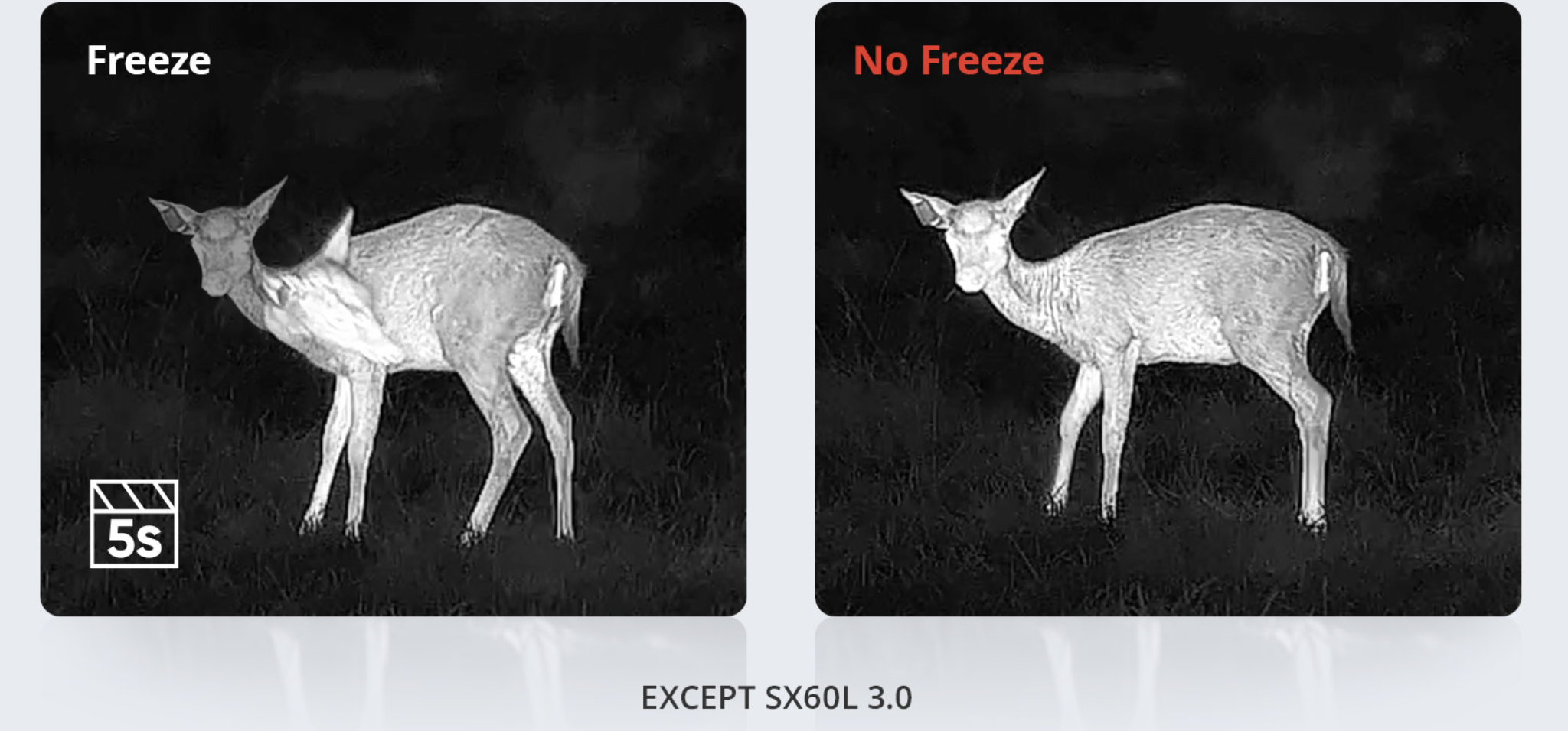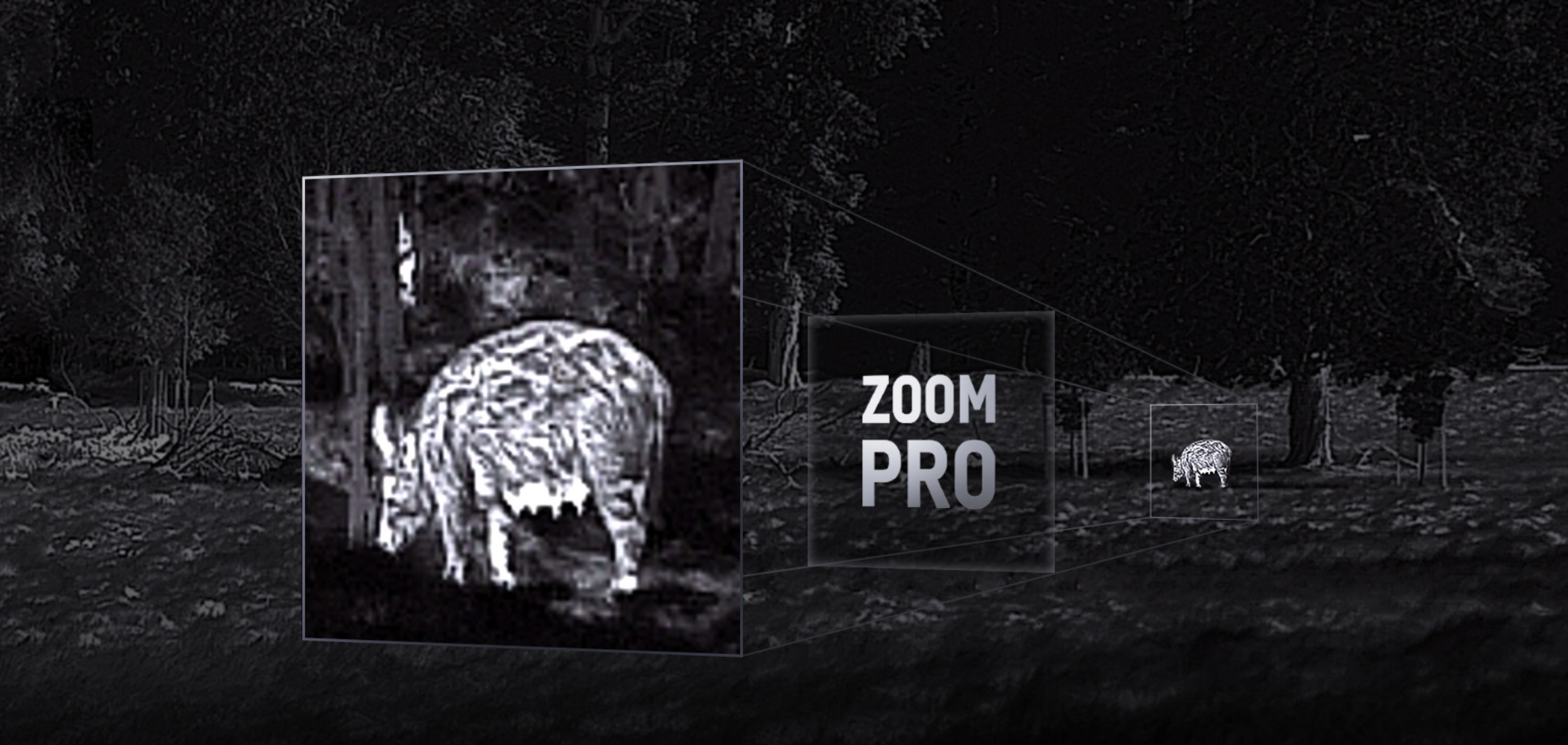Zoom Pro: Vylepšená jasnost s využitím umělé inteligence pro přesné cíleníLes je tichý v měsíčním světle, když v dálce zahlédnete stádo divočáků. Se Zoom Pro algoritmy poháněné umělou inteligencí zostřují každý detail při zvětšování. Co se dříve jevilo jako rozmazané tvary, nyní odhaluje všechny klíčové rysy – záblesk klů, jemné pohyby a zřetelné velikosti – což vám pomůže rychle identifikovat perfektní cíl. Zoom Pro vám zajistí ostřejší, jasnější a chytřejší obraz. (Kromě SX60L 3.0)