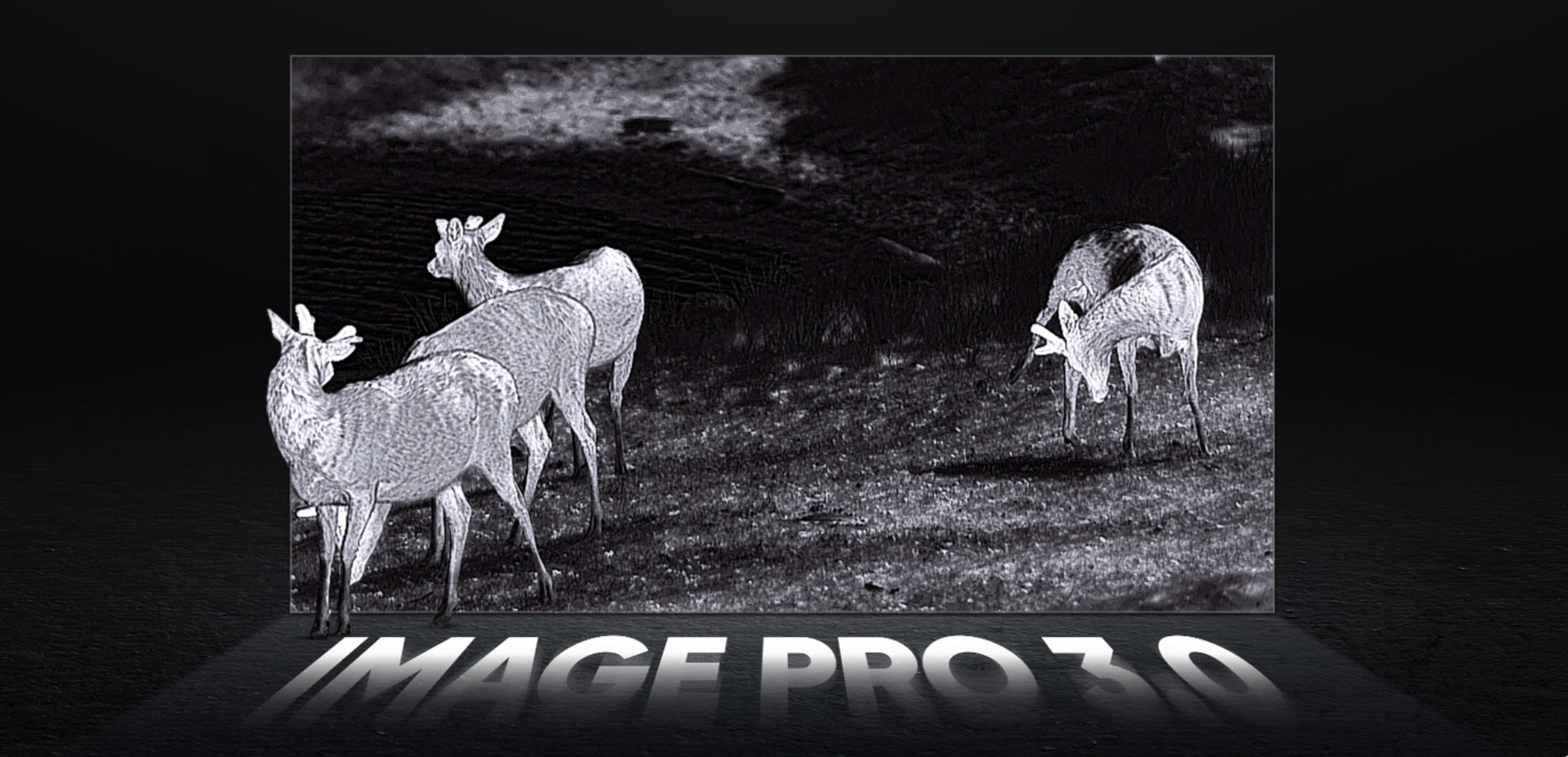 Image Pro 3.0: Snadné zvýraznění cílePři lovu je pozorování prostředí, kde se kořist nachází, stejně důležité jako sledování detailů samotné kořisti. Díky algoritmickému vylepšení cíle v aplikaci Image Pro 3.0 se váš cíl bez námahy zvýrazní na pozadí, což vám umožní cíl okamžitě zaměřit. Poskytuje také výjimečné zachování detailů na všechny vzdálenosti a pomáhá orientovat se v okolí s naprostým přehledem a činit informovaná rozhodnutí při lovu bez rizika