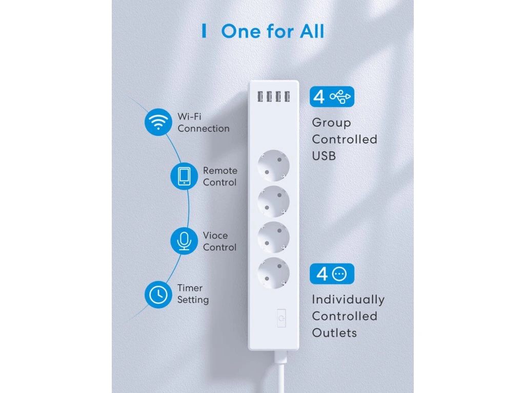 Správa chytré domácnosti je teď ještě jednodušší. Napájecí lišta Meross WiFi je vybavena 4 zásuvkami a 4 porty USB, které můžete ovládat na dálku prostřednictvím aplikace. Je také možné vytvářet plány, nastavovat časovače a ovládat hlasem. Výrobek je kompatibilní s Apple HomeKit, Google Assistant, Amazon Alexa a Samsung SmartThings.