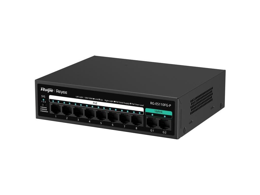 Komentář k produktu Reyee RG-ES110FG-P, 8-Port 10/100 Mbps with 2-Port Gigabit Unmanaged PoE Switch