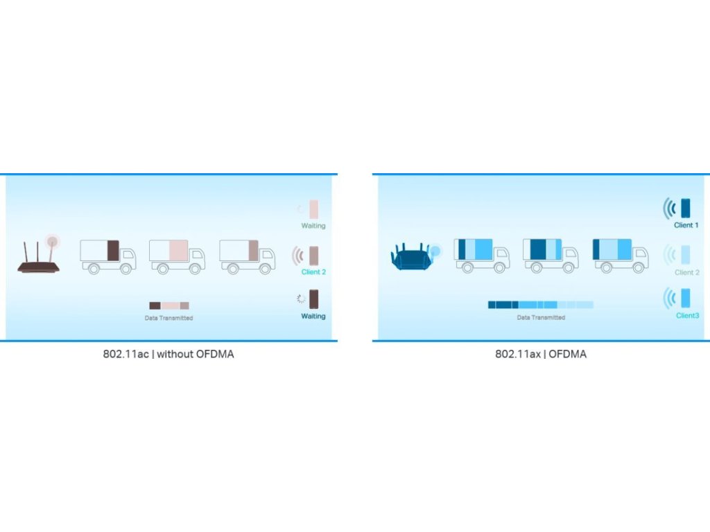 Technologie OFDMA vytváří samostatné segmenty kanálů pro komunikaci s jednotlivými zařízeními, zatímco MU-MIMO umožňuje více klientům současně přijímat data. Kombinace těchto technologií zaručuje, že váš počítač získá silné, efektivní a bezdrátové připojení bez zpoždění, zatímco všechna vaše ostatní zařízení komunikují.