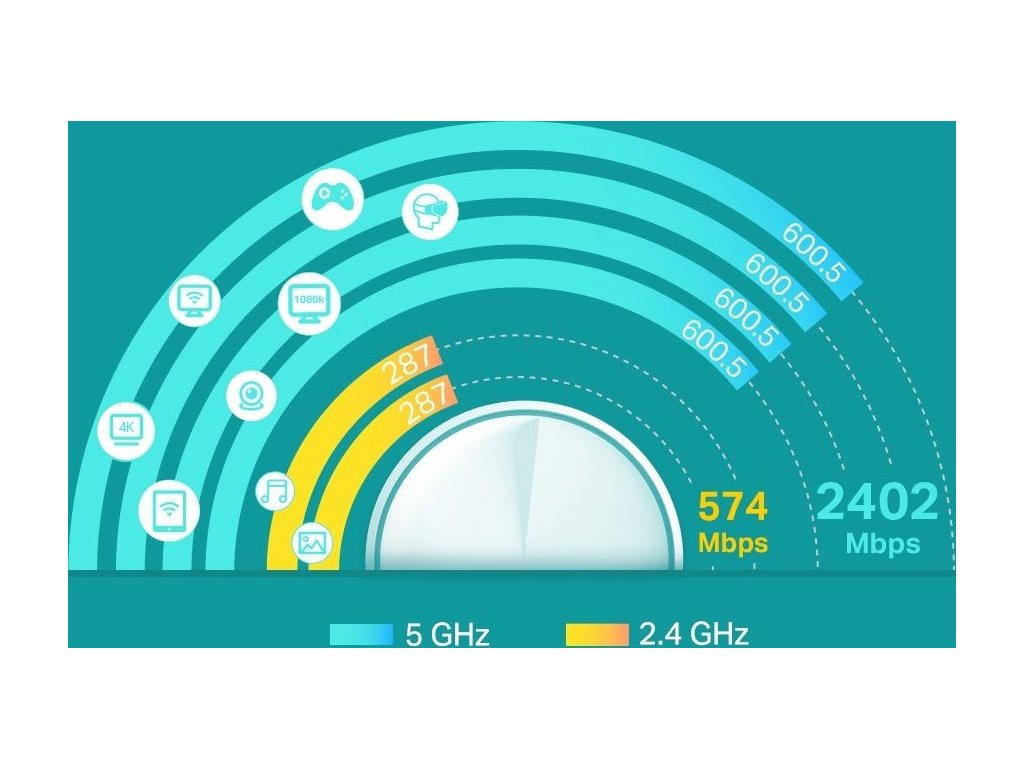 Nejnovější Deco X60 je postaveno na nejnovějším Wi-Fi 6 standardu 802.11ax, který je schopen přenosové rychlosti 574 Mbps ve 2.4GHz pásmu a 2402 Mbps v pásmu 5 GHz a to díky vysokému vzorkování 1024QAM, které bylo doposud k vidění spíše u profesionálních PTP spojů.