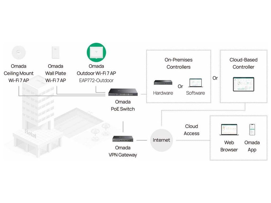- Jednoduchá instalace na stěnu či stožár a integrace do Omada SDN systému